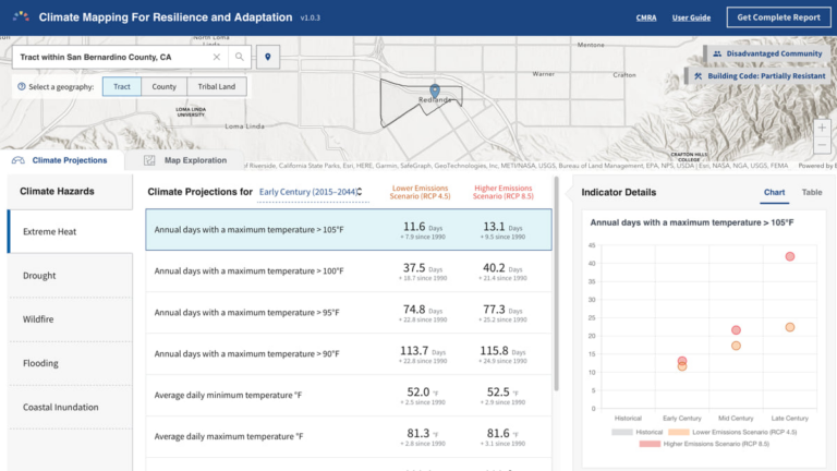 The Climate Mapping for Resilience and Adaptation (CMRA) Portal can help cities, counties, states, and tribes make better decisions about where and how they need to act. Central to the portal, colloquially being called “camera” by its creators, is the CMRA Assessment Tool; with it, we can explore current and projected climate conditions where we live and work.