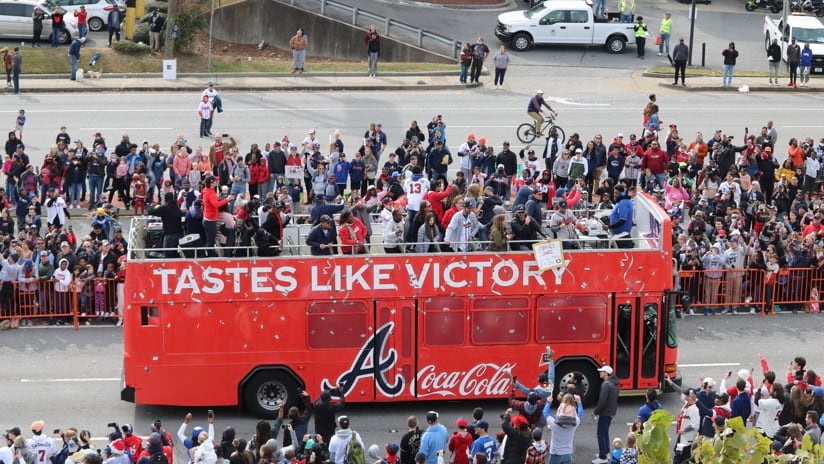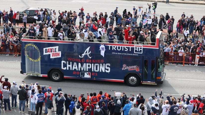 This time the huge celebration would include a parade procession that would wind through downtown Atlanta and culminate at the Braves’ home ballpark, Truist Park.