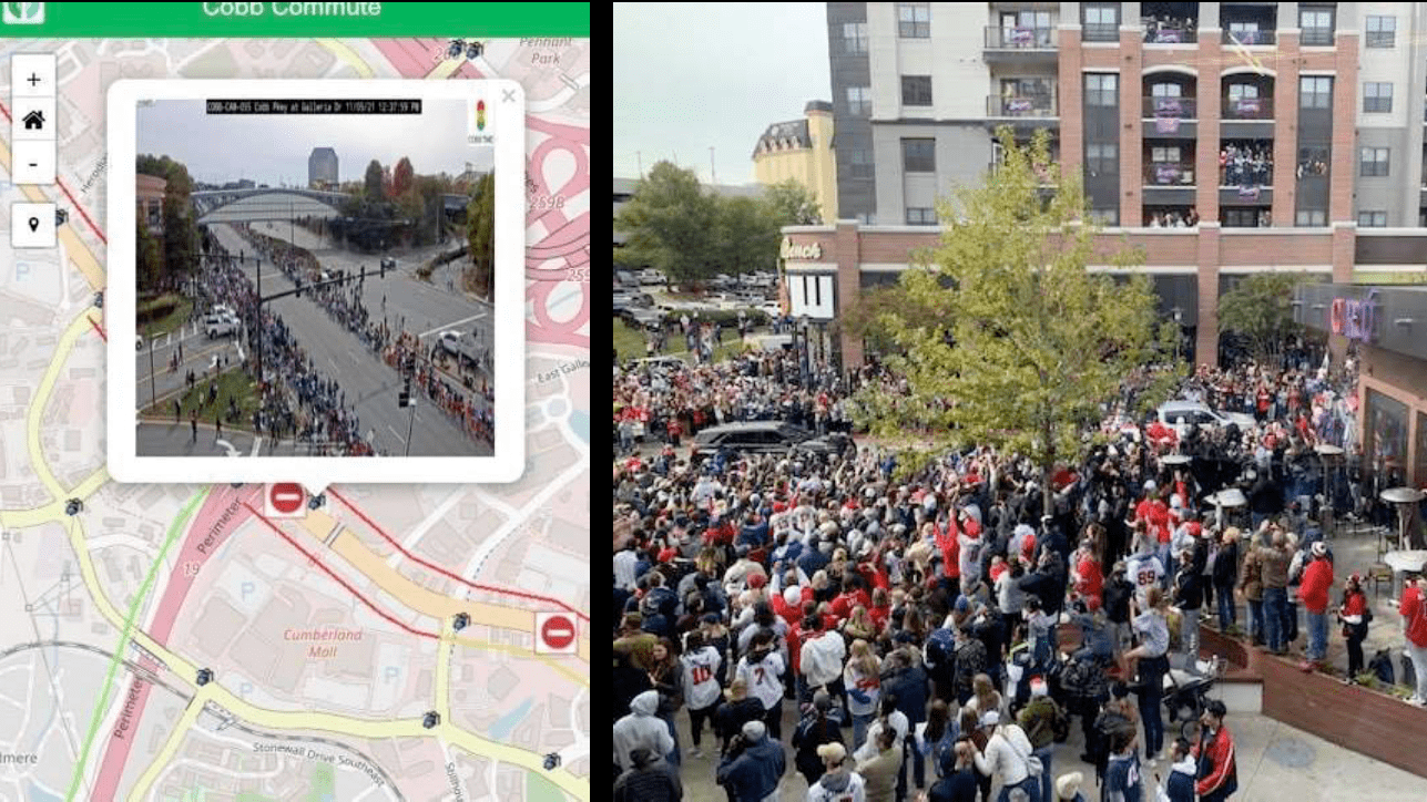 Jeremy “J.D.” Lorens, a lieutenant in charge of traffic management at the Cobb County Police Department, handled parade security using up-to-date maps and remote control of traffic lights. For home games at the ballpark, Lorens had already worked with a team of GIS specialists to apply mapping for crowd control, security, and traffic management. Now, Lorens needed the same detailed maps—outside the stadium—to create the parade route.