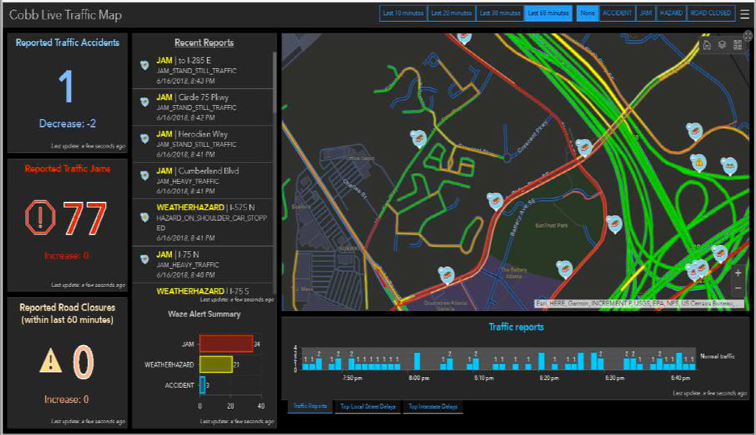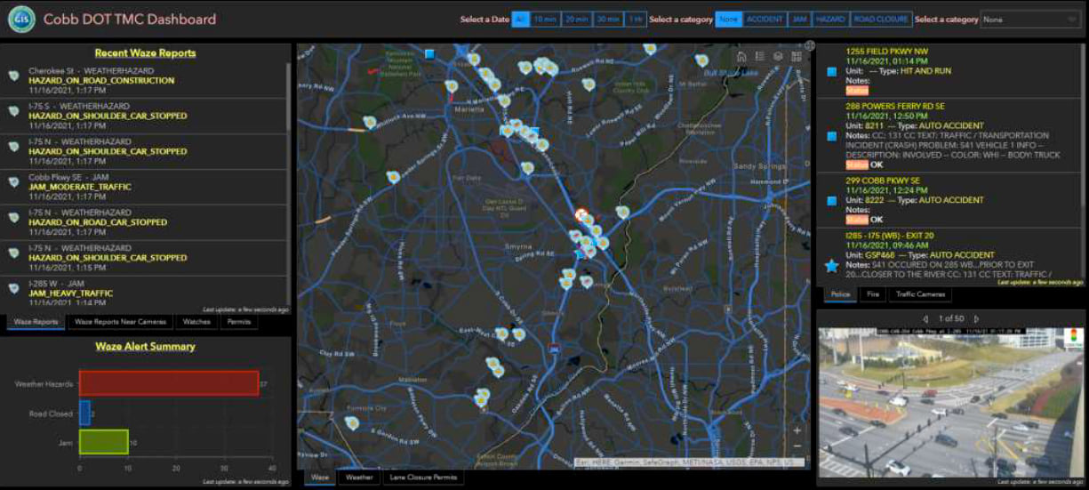 “They could walk into any conference room and with just a click they could see dashboards with maps showing the location of security staff, live traffic, and 911 calls,” said Jennifer Lana, geographic information systems (GIS) manager at Cobb County Government. “They hadn’t seen dynamic data that was so accessible before.”
