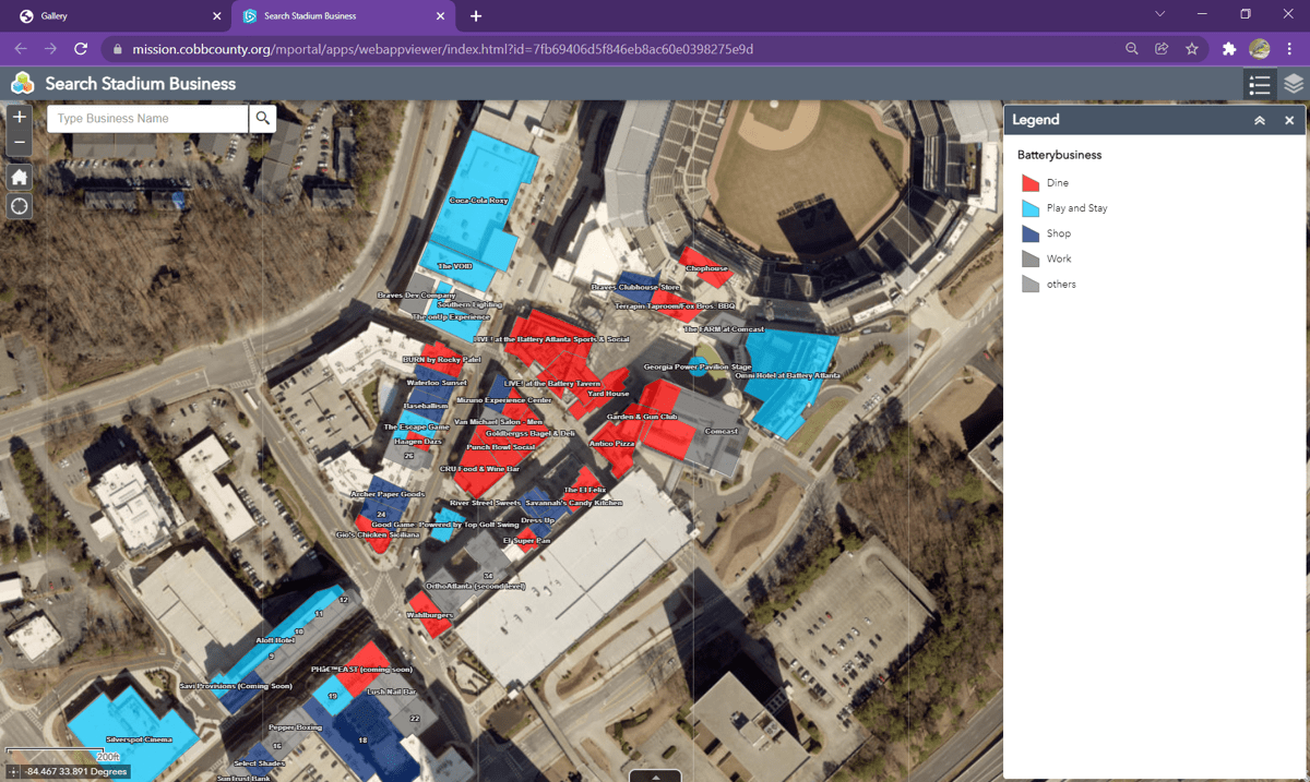 The primary GIS toolset Cobb County relied on includes ArcGIS Mission; it tracked the location of roving plainclothes officers working throughout The Battery. With command-and-control software, the incident commanders in the operations center could make tactical resource assignments and get real-time updates from the field, then share information across teams. The fact that the app could be accessed on a smartphone was key to the stealth requirements of the operation.