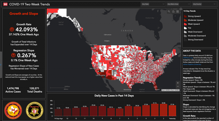 Every week, GIS users from all levels of government found new ways to apply the toolset. Much of this work happened in homes as workplaces closed and workers accessed enterprise GIS in the cloud. Others gathered at emergency operations centers, working around the clock to map cases and activities.