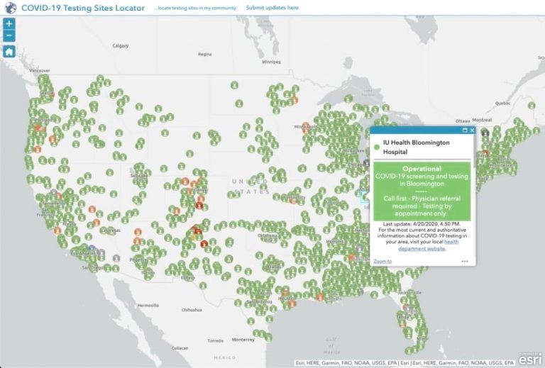 GISCorps played a major role in alleviating the confusion. Members talked to public health experts and decided the best way to convey testing information was to put it on a national map.