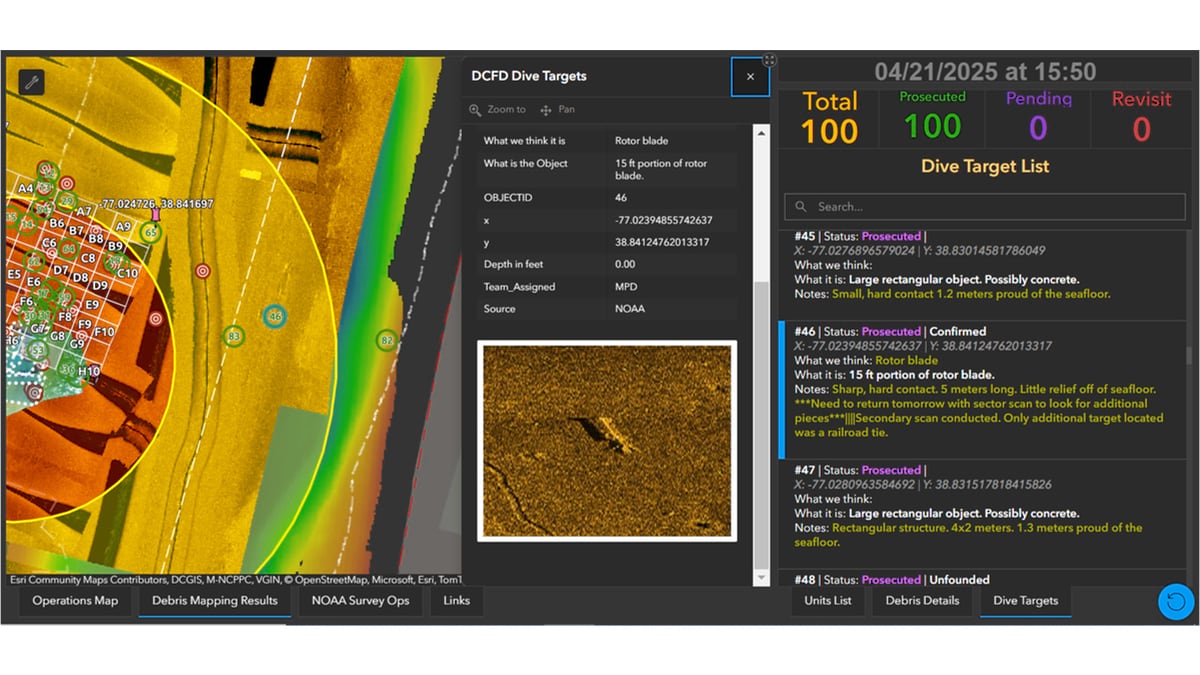 In January 2025, when 67 lives were lost in the Potomac River after the midair collision between a regional jet and an army helicopter, DC firefighters were quick to respond. The divers used an app to document their work and a dashboard was used to track recovery progress.