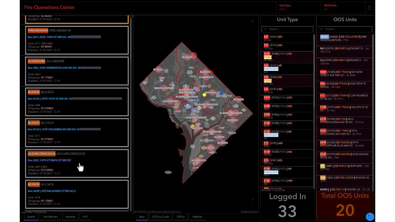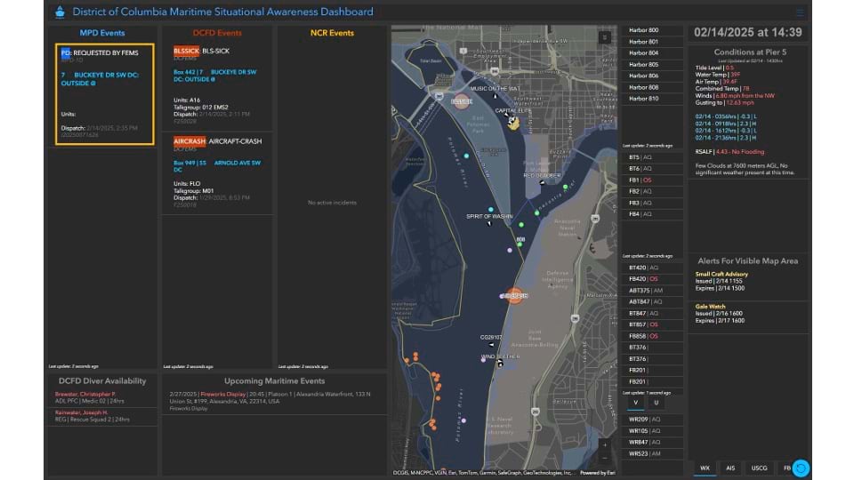 To make sure the data is comprehensive, GIS dashboards connect to other DC Fire & EMS enterprise systems, along with sensors to detect fire temperatures and sonar to see below the water’s surface.