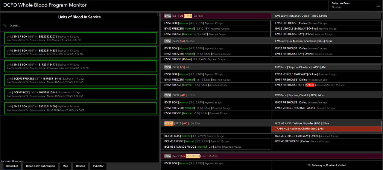 Now, the Blood Management dashboard tracks every unit of blood throughout its life cycle—from acquisition to use—documenting custody, location, and expiration status. The result is reduced waste and optimized deployment of a critical, perishable resource. Blood units nearing expiration are strategically relocated to where they are needed most.