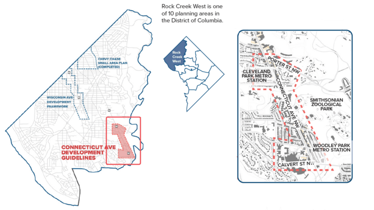 The two neighborhoods are part of a region of DC that city planners call Rock Creek West planning area. It covers over ten percent of the city—everything west of Rock Creek Park and the National Zoo—but contains just one percent of the city’s dedicated affordable housing units.