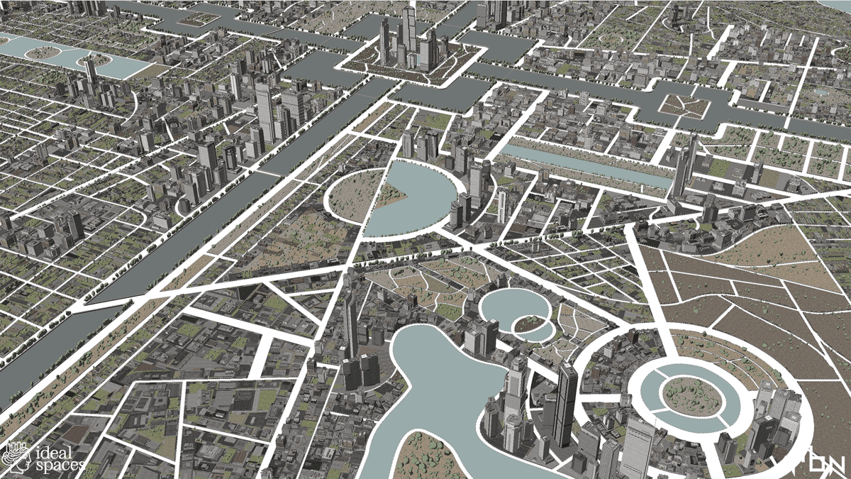 The goal was to create a digital reality that reflected the tradition of utopian architecture, while minimizing the grandiose elements typical of depictions of ideal cities. It had to somehow integrate the elements of European cities that enhance quality of life. Badut and Gehmann called their creation Utopian Disruption, which they presented at Esri’s 2023 Geodesign Summit.