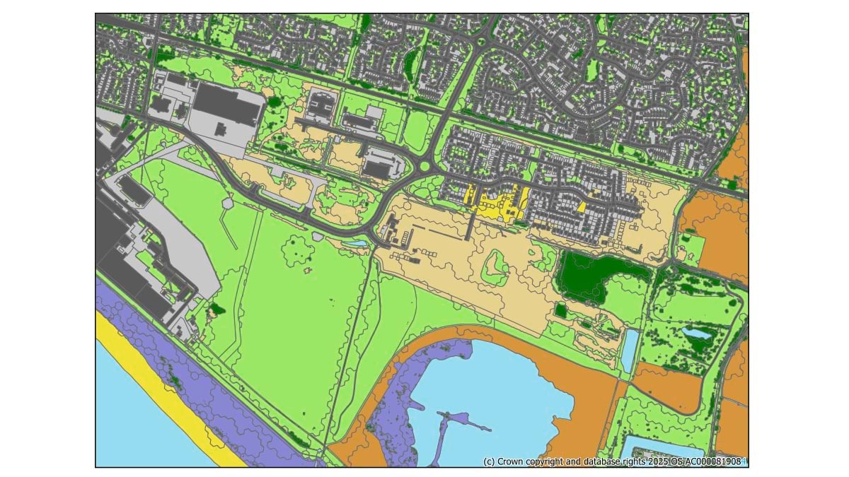 This Ordnance Survey map provided by East Riding of Yorkshire Council shows a sample of habitat types and landcover that will be useful as the Council develops its BNG workflows.