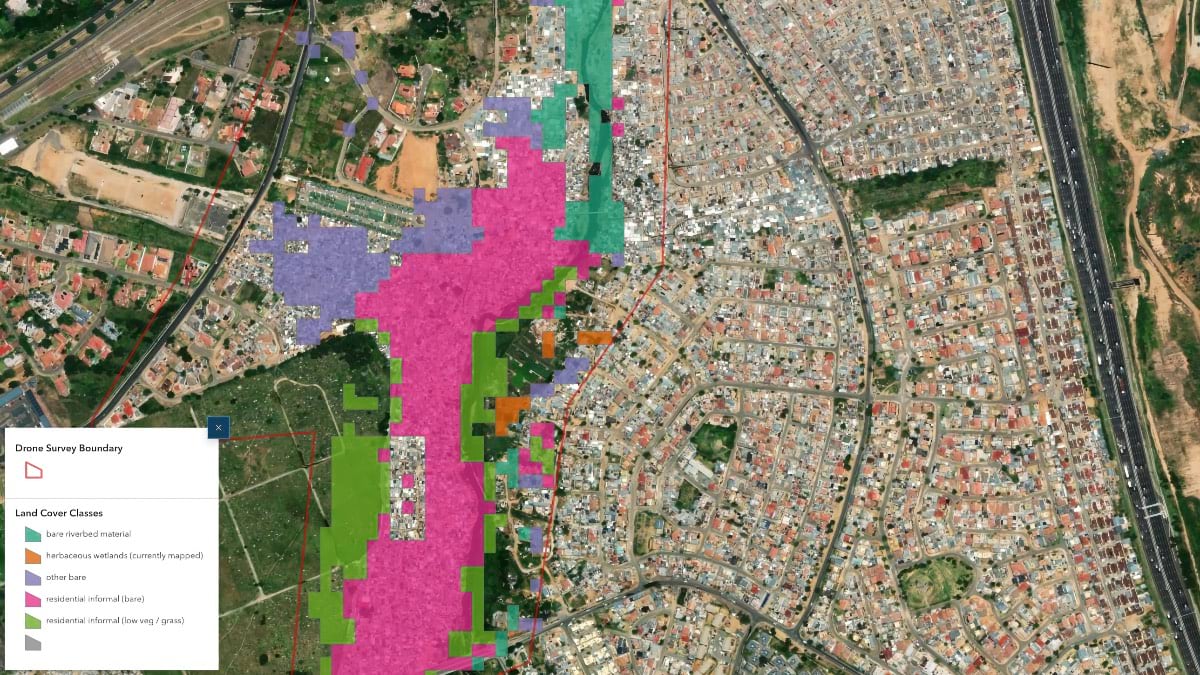 After severe flooding last February, a team of local technologists called South Africa Flying Labs, proposed a new approach. The team is the local branch of the global Flying Labs Network. The network comprises innovation hubs that equip their communities with the technology, skills, and connections helpful for solving social and environmental problems, often with the aid of drones. In collaboration with QP Drone Tech and in partnership with UNICEF South Africa and insurer Santam, South Africa Flying Labs worked with the community to fly drones over the flooded zones, mapping them to tell what parts of the riverbank were most affected and are now especially vulnerable to future flooding and fire.