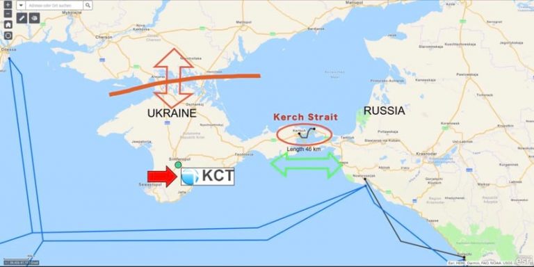 In the case of the Russian invasion of Ukraine, what Kozok and his colleagues noticed in January 2014 was a clandestine opening salvo from Russia. They observed that Russia was installing what looked like an undersea cable across the Strait of Kerch, a narrow waterway between the Black Sea and the Sea of Azov. As they monitored progress on the 46-kilometer cable, it became apparent that its end point was the peninsula of Crimea.
