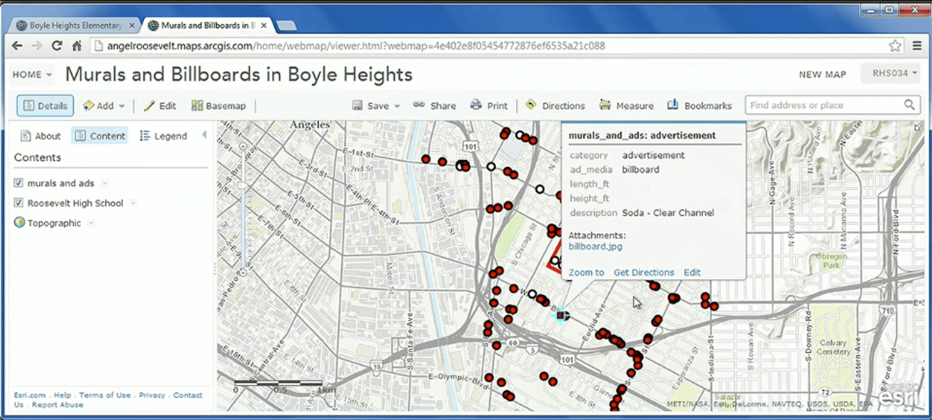 Their students’ work, however, already has drawn attention. In 2013, Ayala and three other high school classmates presented their findings before a large annual conference sponsored by Esri, where their work provided inspiration for GIS users from around the world. Since then, the students have made an annual trip to the Esri campus in Redlands, California to share how GIS enhances their understanding.