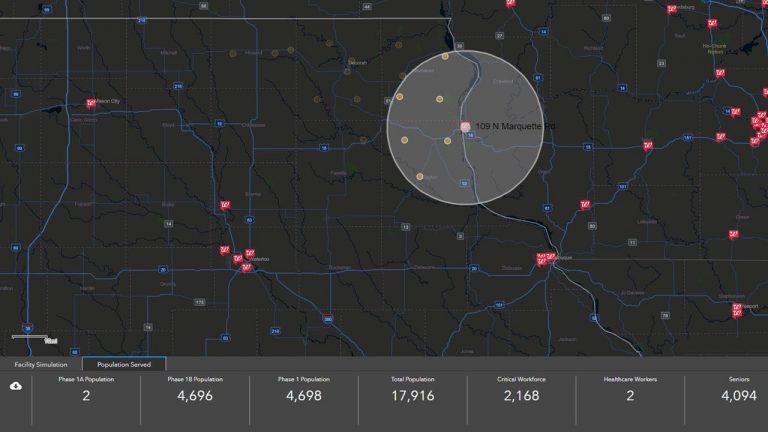 It is possible and perhaps likely that in Phase 2 of the vaccine distribution plan, the general population’s desire to be vaccinated will overrun capacity in vaccination venues. Government leaders will have options to increase capacity by engaging new partners in the process and/or by siting Points of Dispensing (PODs) in strategic locations to meet demand. GIS technology has long been used for various types of site selection and is especially useful when considering complex criteria, such as accessibility, population makeup, ingress and egress, budget, and more.