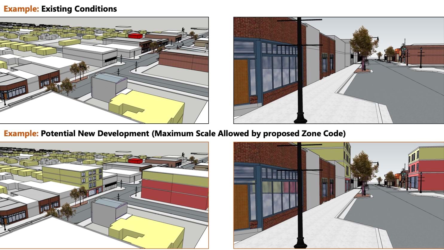 The details were then presented to city council to enact a zoning code change that could accommodate mixed-use development. Retail at the ground floor and apartments above would fit in well with the existing feel of the area. At this step, the digital twin helped every stakeholder understand what would change and how it would look.