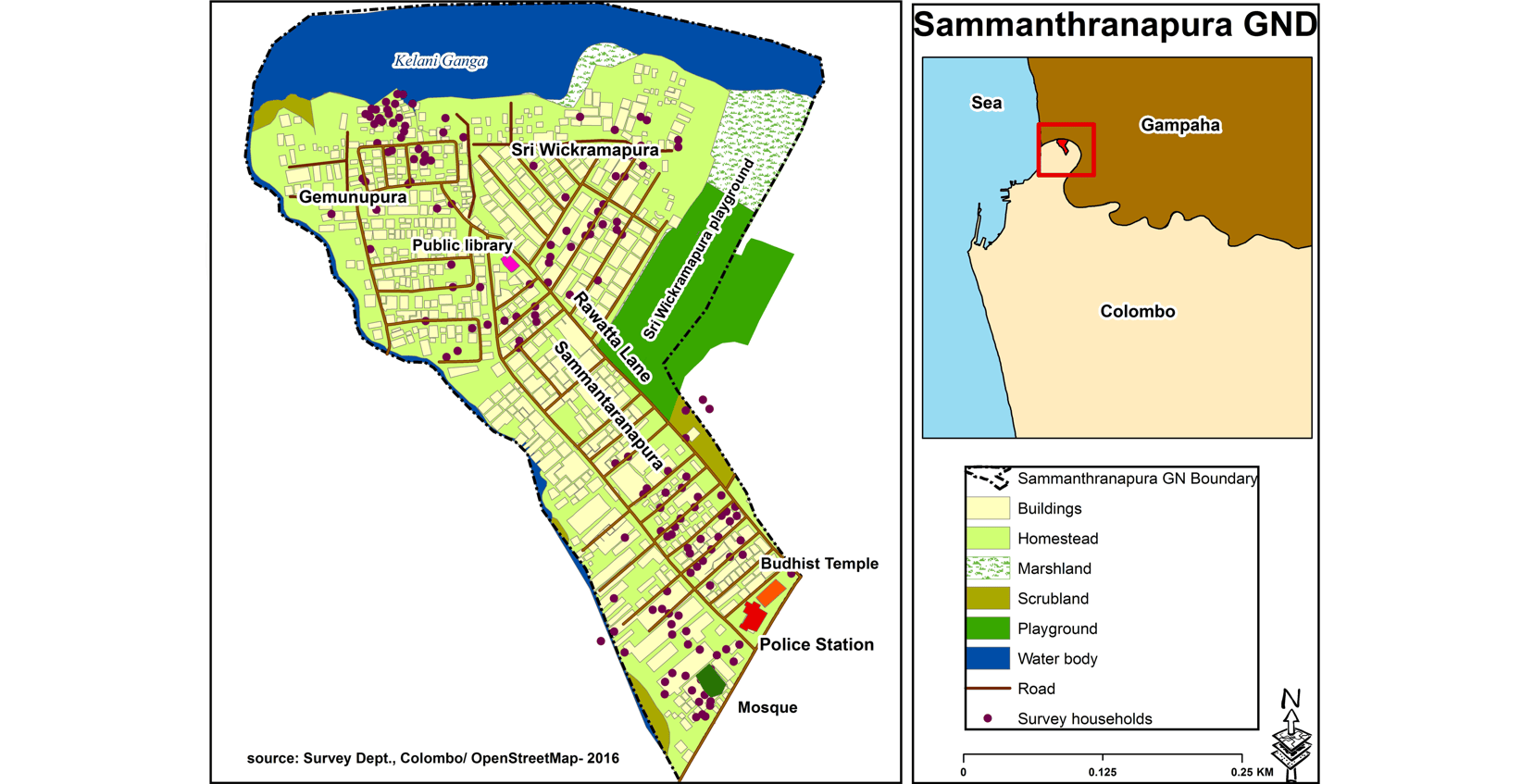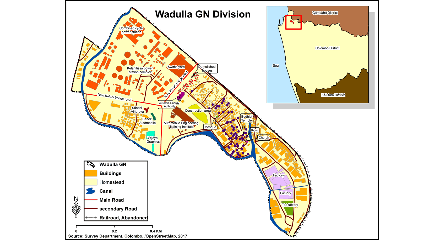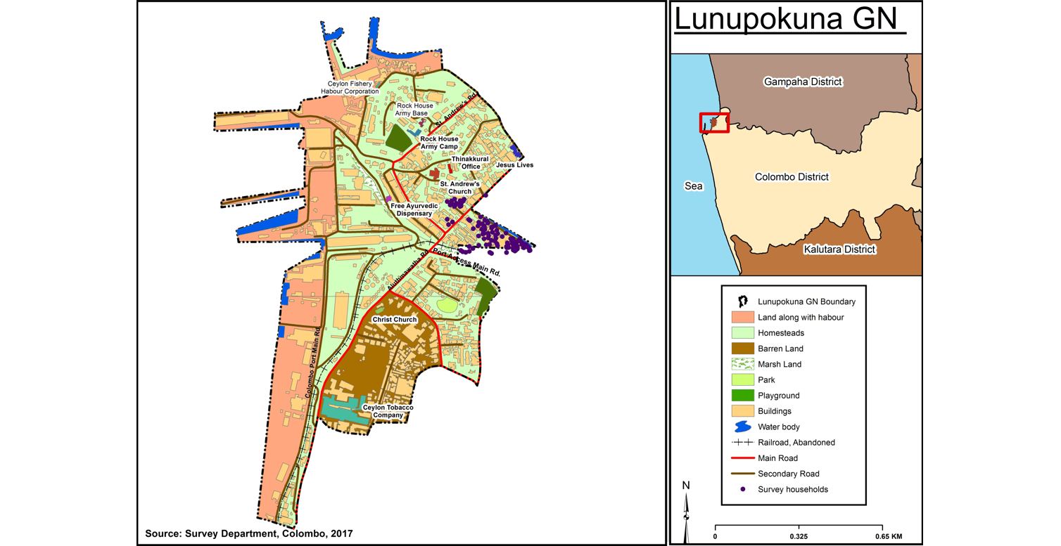 Working with GIS data from the Survey Department of Sri Lanka, the team created digital maps of several settlements in Colombo. “The GIS tools helped us document what kinds of resources these areas have,” Alikhan said. “The maps illustrate how specific communities access basic services, and whether people need to visit other areas for necessities.”
