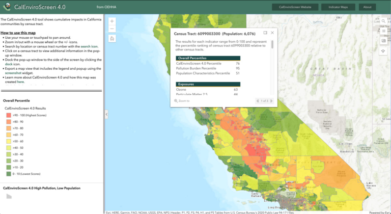 A user can quickly discover, for instance, that a census tract’s pollution burden is higher than the pollution burden in 90 percent of all other tracts. “The power of CalEnviroScreen is that you can use it as a relative tool, to show that this community is more burdened than that one, and here’s the data to prove it,” Wieland said.