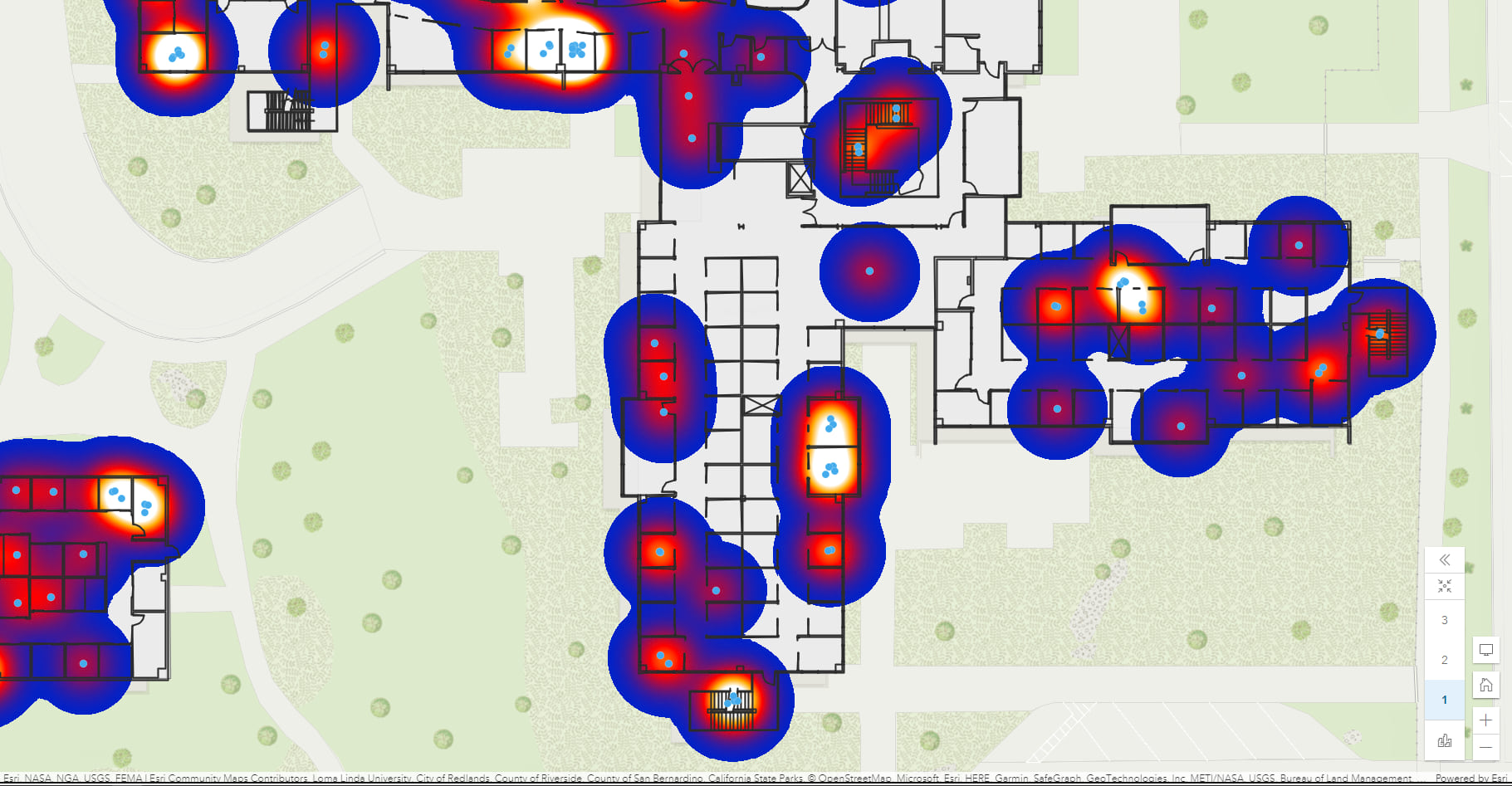 The examples offered so far have involved improving actions happening in the present, in real time. Indoor GIS also offers a way to keep records and analyze activities after the fact, looking for patterns and understanding ways to improve design. What this means, in essence, is finding a way to combine the data over time from an unlimited number of blue dots.