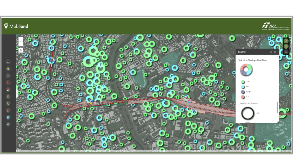 In Lombardy, RFI used MobiLAND maps and analysis to spur the regional government to invest €41 million in redesigning the city squares in front of railway stations to favor pedestrians, bicycles, and public transport. After RFI demonstrated student demand, the ministry of transport ordered the construction of a new, €150-million network of bike lanes connecting about 50 of the country’s universities directly to stations.
