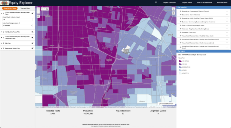 SCWP project applicants and those involved in the governance of the program are encouraged to consider the needs of the community. They have access to a variety of tools that provide awareness of equity issues, including the County of Los Angeles Equity Explorer which is a collection of data that identifies disadvantages experienced by certain communities. This map-based tool pinpoints places where historical racism and inequities in investment have happened and where land-use planning has been lacking. The SCWP prioritizes the development of projects in those communities with input from the community about the enhancements they want to see.