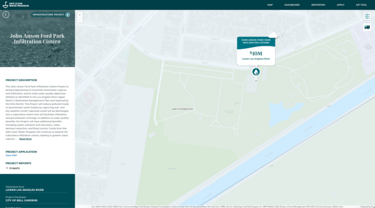 “Mapping provides a ‘wow’ element for us to show progress to interested stakeholders and the public,” said Kirk Allen, senior civil engineer at LA County Public Works, and lead administrator of the SCWP portal. “They can see how these projects are equitably distributed. It adds a perspective you can’t do without a map.”