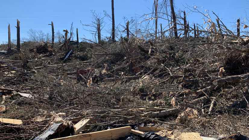 “This was the worst damage that I’ve seen from a tornado,” said David Thornburg, Section Chief, Alabama Fire College. “I saw 24-inch diameter pine trees snapped 20 feet in the air as well as at the ground, total destruction of mobile homes where the frame rails were left but nothing else was recognizable as a house part, and a house that was picked up and moved 30 to 40 feet onto a road.”
