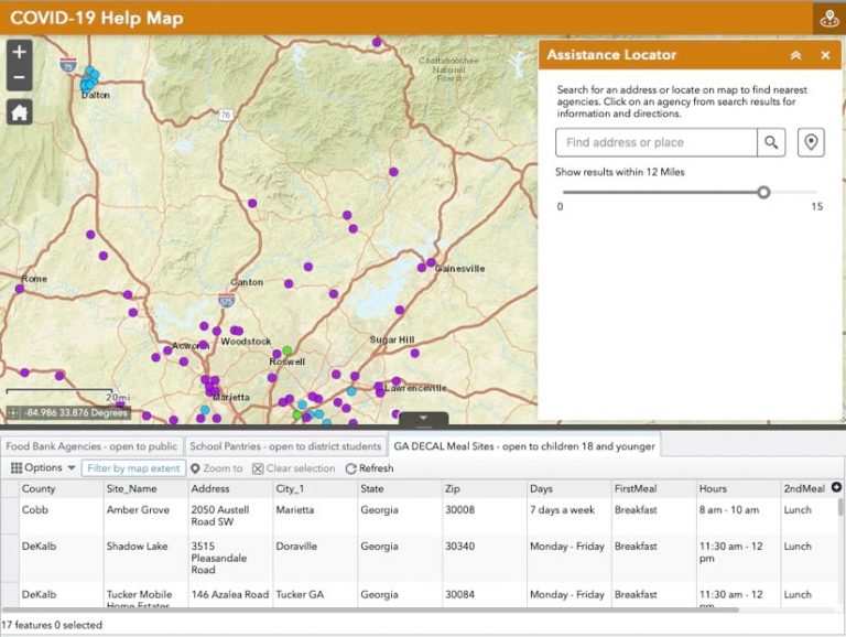 In many cities across the country, food banks are taking action and using maps to support their mission. The Atlanta Community Food Bank (ACFB) launched its COVID-19 Help Map for families in need, communicating food pickup sites across the Atlanta metro region.