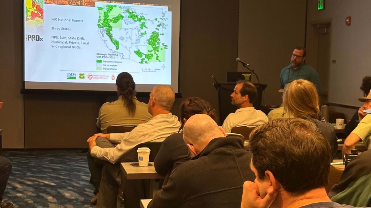 Dunn has worked with Ashland leaders to hold three PODs planning workshops, looking at the broader landscape of two million acres and refining a smaller area closest to the town. They prioritized protecting the municipal watershed and the town itself, paying special attention to the condition of boundaries most critical to those areas. Now they’re using that work to guide prescribed burns across Forest Service, municipal, and private forests, focusing on areas where initial fuel reduction has already been completed under the Ashland Forest Resiliency project.