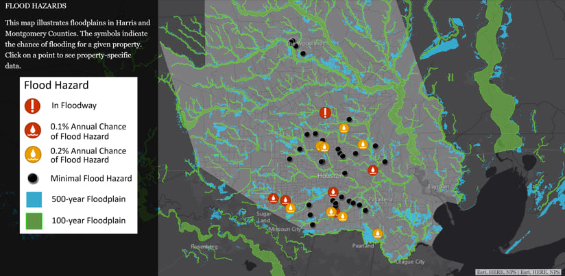 Additionally, about 25 percent of the Houston complexes are located in high-risk floodplains. The Woodlands properties are all in areas with a minimal history of flooding.