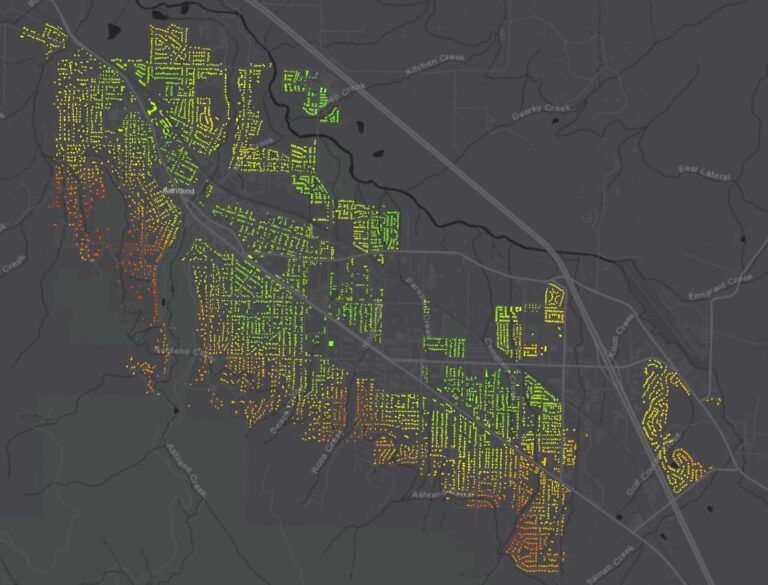 When the Almeda Fire swept through Oregon’s Rogue Valley in September 2020, it destroyed or damaged over 2,750 structures including 2,400 homes in the region between the towns of Ashland, Talent, and Phoenix. The disaster reinforced a greater need for wildfire mitigation for each home and every neighborhood—a measure the City of Ashland is taking using smart maps and risk modeling.