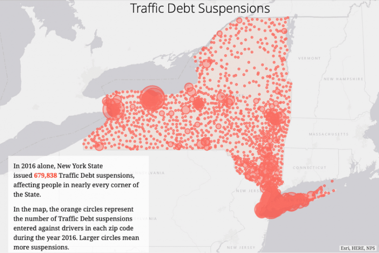 The stories these maps tell helped inspire the Driver’s License Suspension Reform Act, which will eliminate suspensions for unpaid tickets and require income-based payment plans. The New York State Legislature passed the bill, which is awaiting the governor’s signature.