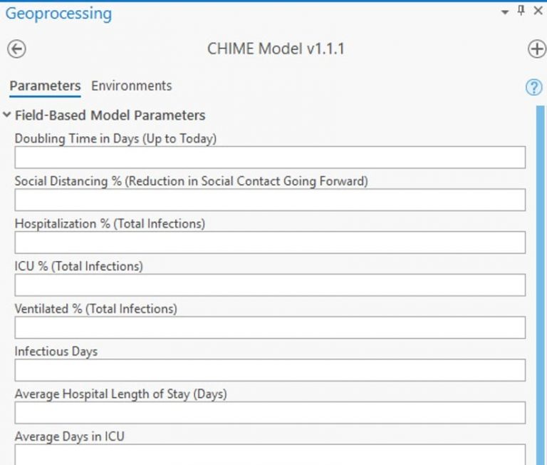 At the onset of the COVID-19 outbreak, Esri’s spatial statistics software development team worked to incorporate several of these open-source models into the geospatial toolbox, starting with the CHIME model. Bringing a model into a geographic information system (GIS) aligns it directly to the data source that drives the model. This integration provides the means to visualize a problem geographically and ties model outputs to solutions designed for immediate action.