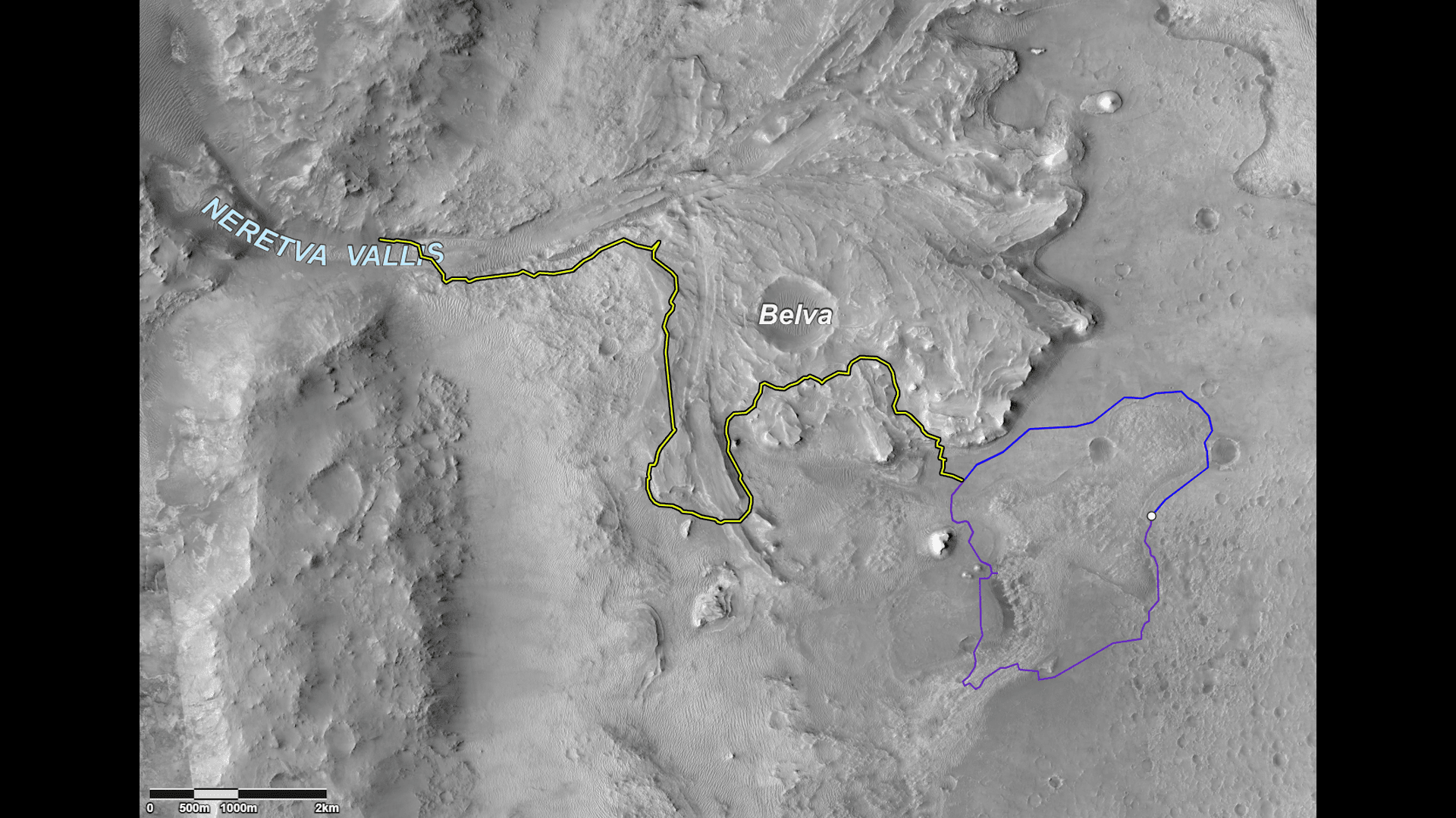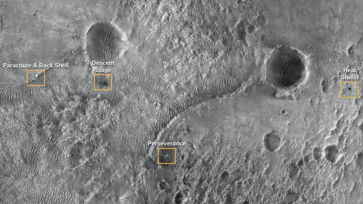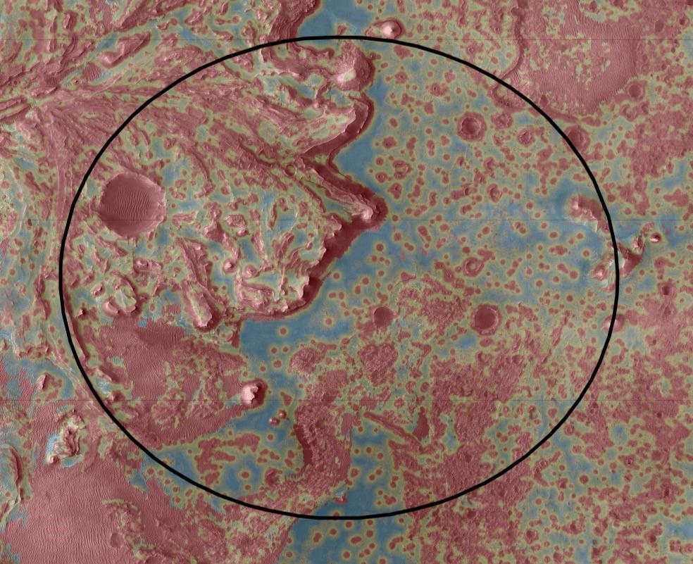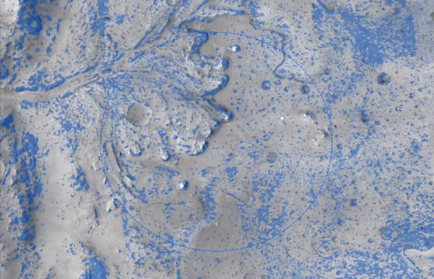 The areas captured at highest resolution are the areas of greatest interest, including the Jezero crater where the Mars 2020 mission landed. From high-resolution imagery, the team derived a digital elevation model, which allowed engineers to see rocks and high slopes and assess landing sites.