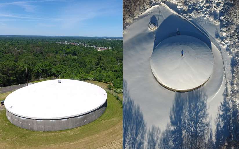 The impetus for purchasing the drone was to improve the efficiency and safety of workers inspecting Natick’s two water tanks. Massachusetts Department of Environmental Protection (MassDEP) requires monthly inspections of all tanks in the state, a process that required workers in Natick to ascend a ladder to make sure that access points at the top of the tank were secure. The use of the drone allowed Natick to eliminate workers’ exposure to this hazardous task.