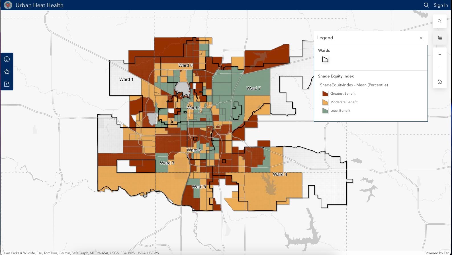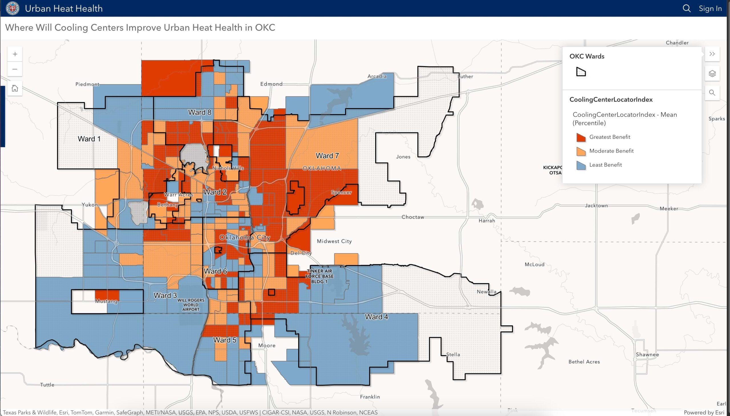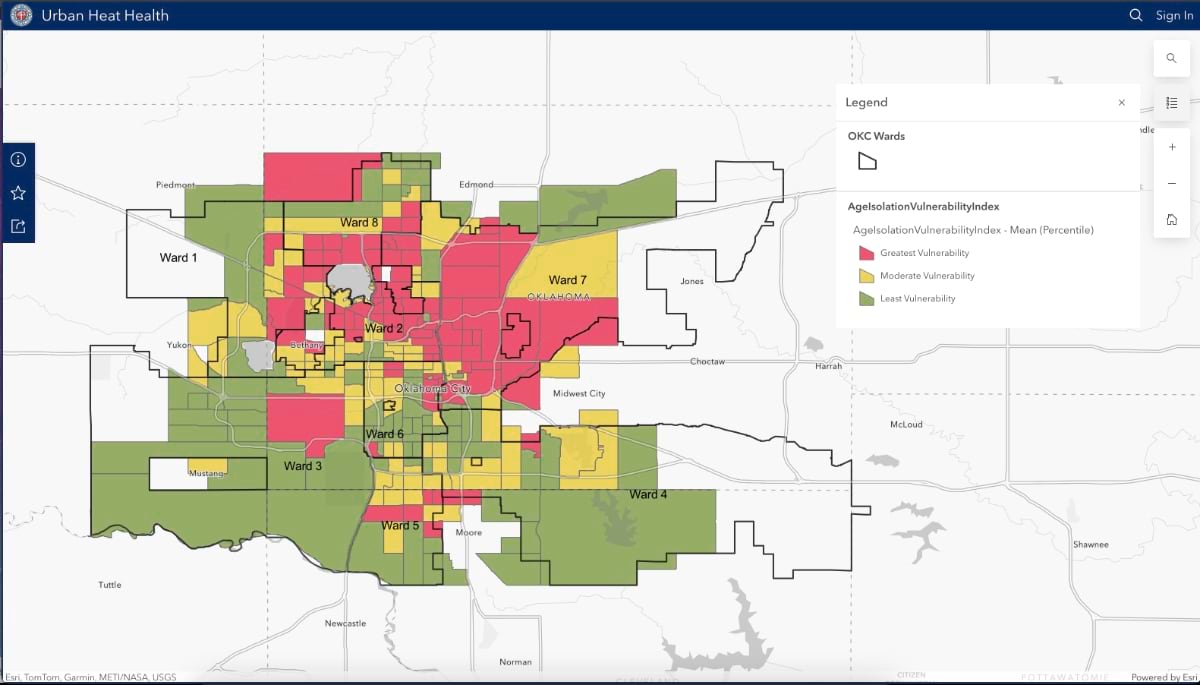 For Oklahoma City’s project, analysts looked at summertime temperatures, air quality readings, and demographic information such as age and poverty levels within US census tracts. The city’s heat maps, a related dashboard, surveys, and other research are published on a site created with ArcGIS Hub called Heat Health in Oklahoma City.