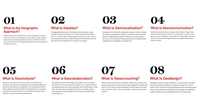 Grounded in the power of where, GIS organizes and integrates all types of data and supports mapping and virtually all human activities with analysis, models, and maps of all kinds of information, transforming how we address challenges and act responsibly. GIS also enables the geographic approach as a way of thinking and acting that brings together all the factors and supports holistic thinking.