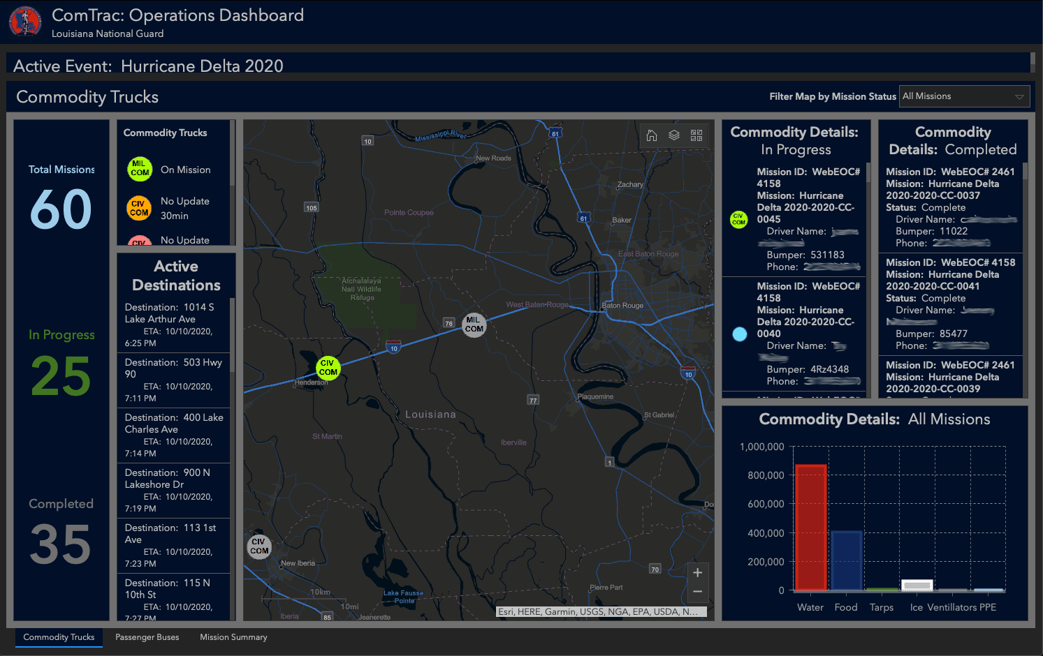 “The National Guard moves commodities, whether it be food, water, tarps, and other vital resources,” Mitchell said. “ComTrac gives everyone the ability to identify where each truck is located once it leaves the Regional Staging Area.”
