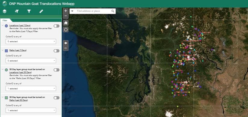 “Across species and individual telemetry projects, we’re processing and displaying 1,500 new GPS locations daily,” said Treg Christopher, a species data systems manager with the Washington Department of Fish and Wildlife. “That means you can monitor more animals, in addition to providing better individual animal information, with less effort than what you could with radio telemetry.”