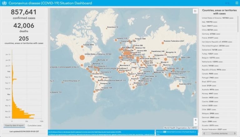 See the COVID-19 GIS Hub for location intelligence resources. The Coronavirus Response solutions page provides a collection of maps and apps that can be used by public health agencies to understand the virus’s impact and share information about the pandemic with your community. Local authorities and organizations that need help in crafting their responses can reach out to the Esri Disaster Response Program for assistance.