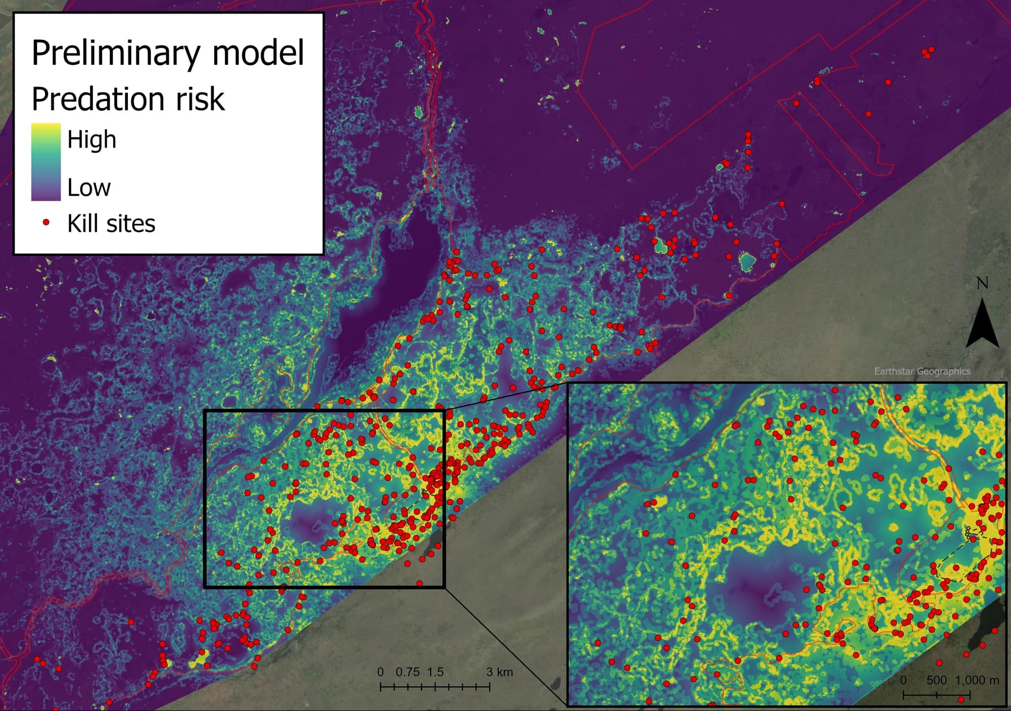 De Angelo leveraged this data to create a risk map for capybaras, the jaguars’ main source of food. Capybaras had been living in Iberá without a predator for decades. What used to be a place for them to freely forage, relax, and sleep is now an area where they need to be strategic amid a predatory threat.
