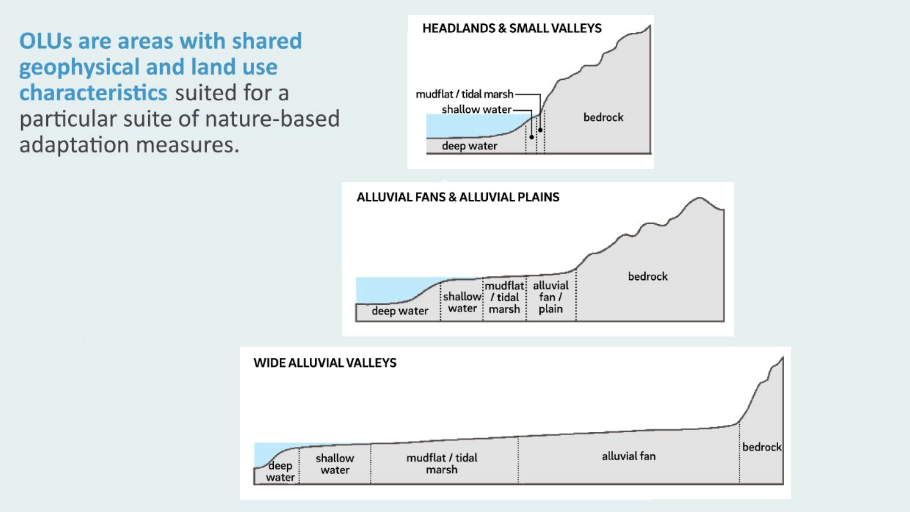 The Bay Area is home to a broad diversity of people, topography, tidal patterns, and microclimates. Strategies that work in one city for one stretch of shoreline may not work in a neighboring city. The Adaptation Atlas took the approach of cataloging and describing the 30 distinct operational land units of San Francisco Bay’s 400-mile shoreline.