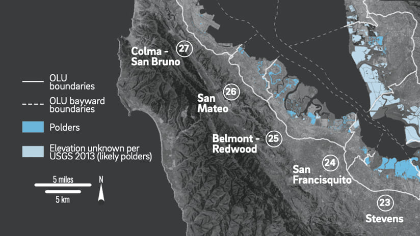 The Bay Area is home to a broad diversity of people, topography, tidal patterns, and microclimates. Strategies that work in one city for one stretch of shoreline may not work in a neighboring city. The Adaptation Atlas took the approach of cataloging and describing the 30 distinct operational land units of San Francisco Bay’s 400-mile shoreline.
