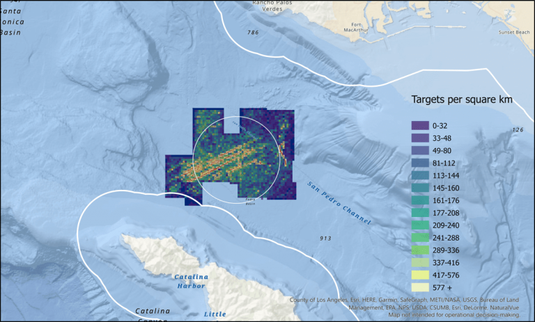 While 46 square miles may sound like a significant area to cover, and it is, “there’s a lot more area of the San Pedro Basin to go,” said Heidi Batchelor, a GIS analyst at Scripps who participated in data processing on the expedition. In the end, the crew ran out of time funded and allocated to them for use of the ship, “not out of debris.”
