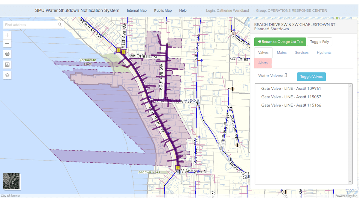 “We had a 20-page document of problems that we had to get fixed,” said Toby Semroc, GIS developer for the City of Seattle. “Building the shutdown tool helped with the integrity of the city’s data as well because the data maintenance group was seeing it from a different perspective.”