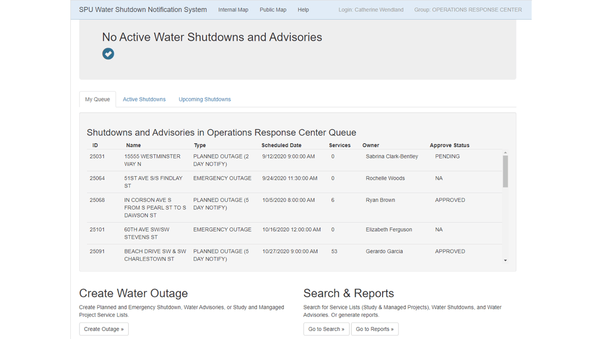 “The mapping angle, which included a public-facing Water System Outage Map, was the straightforward aspect,” explained Stephen Beimborn, manager of Departmental GIS Analysts for Seattle Information Technology. “The difficulty was creating a workflow to manage four different stages of planning and approval, frequent cancelations, and both planned and emergency work.”