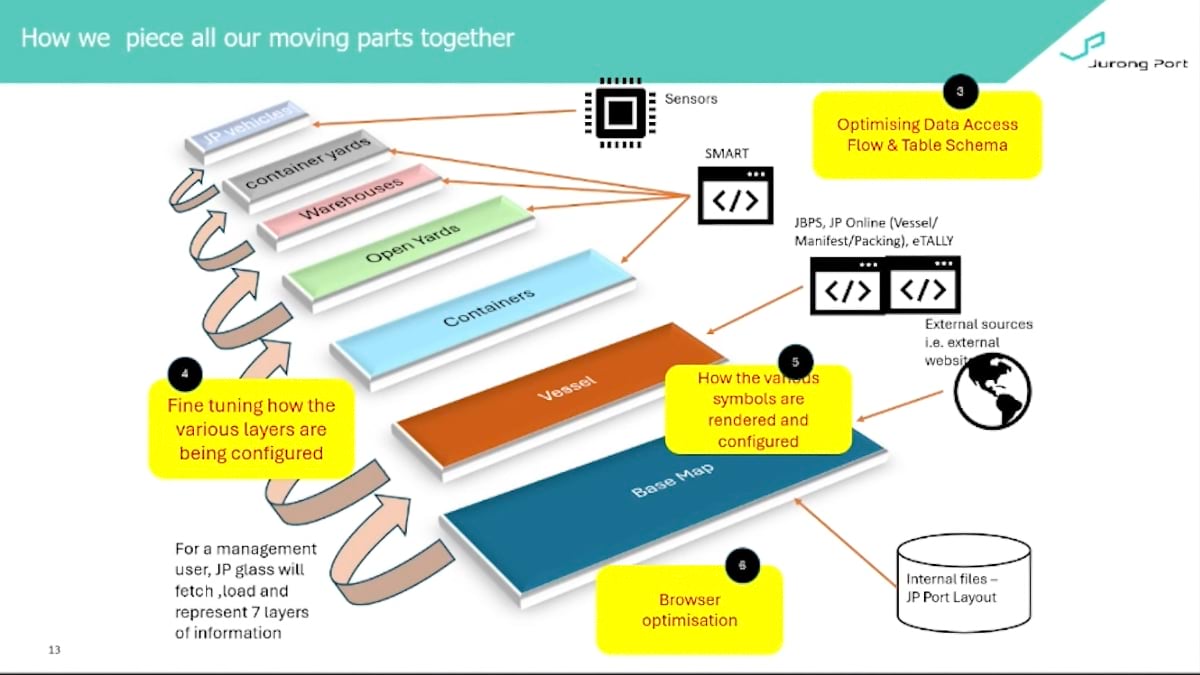 The senior leadership team’s vision for developing JP Glass is to provide all staff with a comprehensive overview of the port, featuring live updates on berth status, vessel activity, cargo handling, storage, delivery, and security. This initiative supports Jurong Port in resource planning, allowing it to react faster and more efficiently.