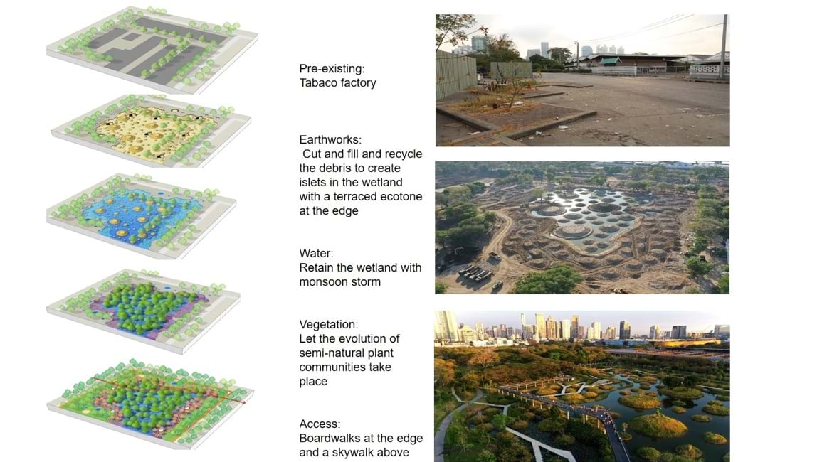 Yu’s sponge city concept takes a similar approach to restoration. Data and modeling inform large-scale projects to transform neglected urban areas and former industrial sites into landscapes that serve both ecological and social functions.