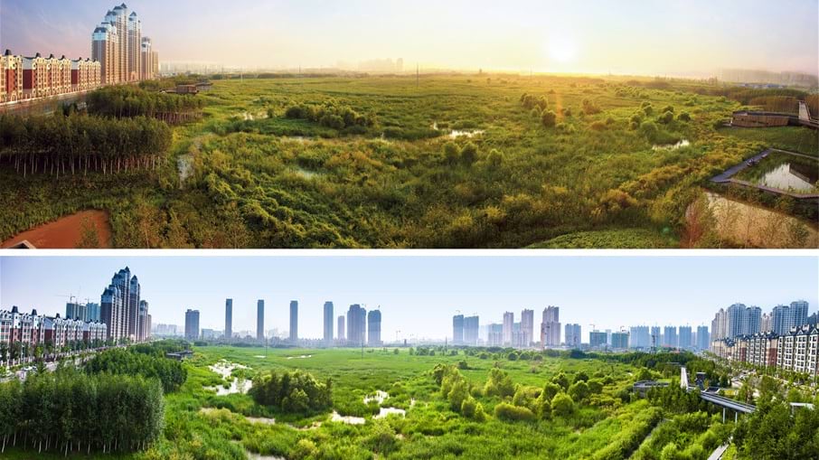 Motivated by his childhood experiences, Yu would eventually create the “sponge city” concept—designing a landscape that mimics a natural wetland.