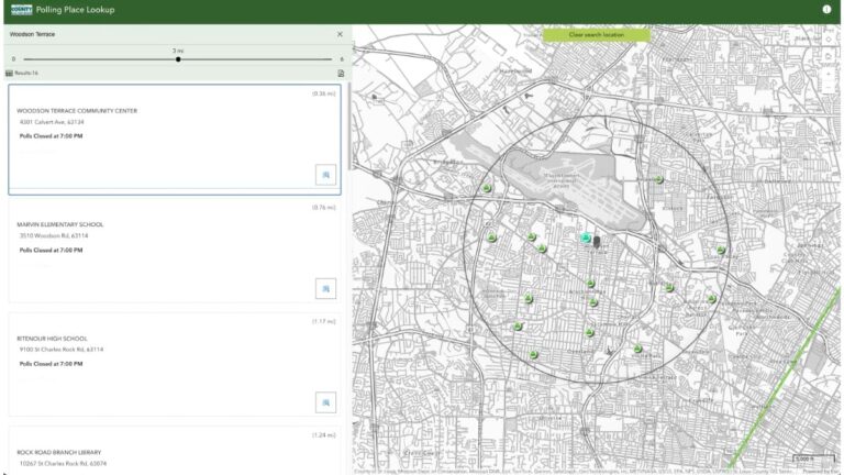 Recently, new laws in Missouri made it easier for people to vote. Voters can now visit any polling center—instead of an assigned location—or vote as absentees. The Polling Place Lookup tool helps voters find their nearest polling center. For those choosing to vote as absentees, the Absentee Voting Lookup tool highlights satellite sites and calculates driving times to locations where voters can drop off their ballots. Voters can also use the Saint Louis County Sample Ballot Lookup tool to explore the candidates and initiatives specific to where they live.