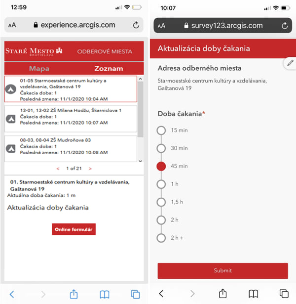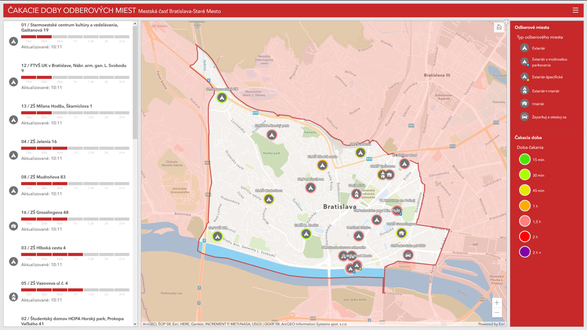 Števove and a colleague administered the back end of the dashboard application, pulling details they found on Facebook and from text messages about wait times to keep the mapped information up-to-date. They also had colleagues on the ground visiting testing sites to check progress and send updates.