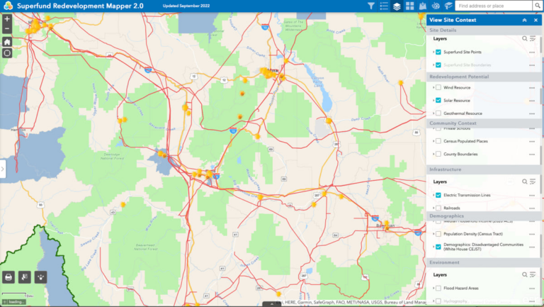 Anyone can search the Superfund Redevelopment Mapper for sites based on factors such as proximity to highways, solar potential, or access to essential services. The tool also provides demographics of the people and communities nearby.